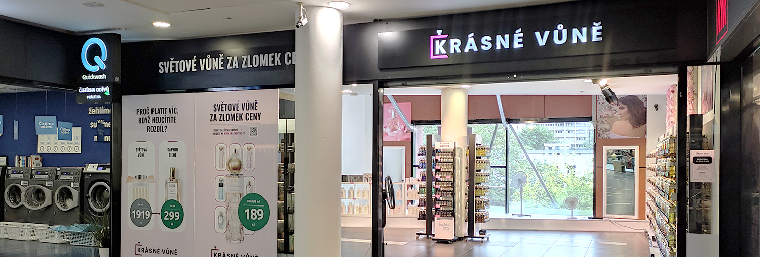 Rádi bychom vám představili novou obchodní jednotku v prvním patře. Krásné vůně nabízejí světové vůně za zlomek ceny.